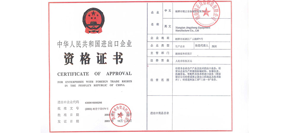 湖南精正設(shè)備制造有限公司成立;2月,與清華大學(xué)材料科學(xué)工程系聯(lián)合研制屬于國家863計劃項目的陶瓷膠態(tài)注射成型機(jī);10月23日,獲得國家進(jìn)出口經(jīng)營權(quán)。